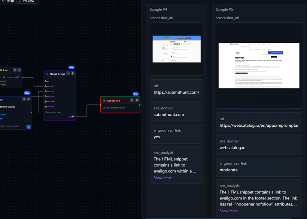 Start fast with pre-built nodes for web scraping, data extraction, AI prompts, array processing, and more. Mix and match to create powerful workflows in minutes.